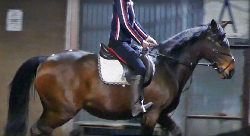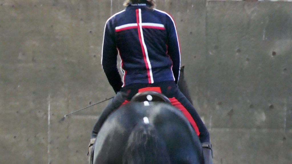 This rider’s right leg felt like it was unstable and dangly. She knew something was wrong but couldn’t work out what was going on or what to do. You can see she has a collapsed hip and her right leg and knee are not engaged. After a couple of biomechanics sessions she is feeling much better.